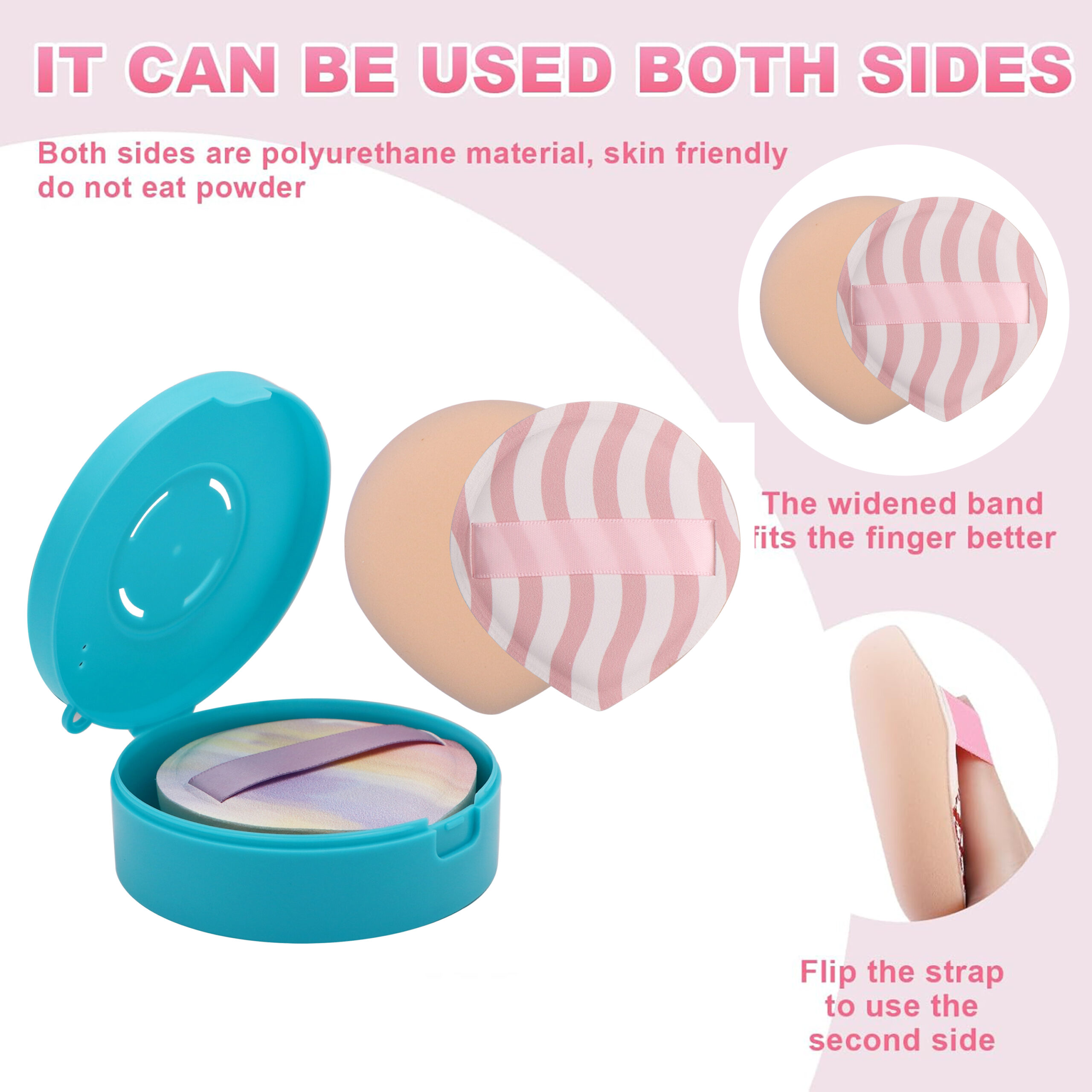 The puffs are suitable for dry and wet cosmetics, such as foundation, blush, loose powder, powder, body powder, concealer, and more. They are easy to apply to the nose or eyes.